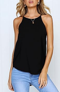 ✔ UNIQUE AND CLASSY DESIGN: Sleeveless style with feminine halter neckline will show your charming curves, make you chic and attractive. Curved hem adds a touch of trend. Perfect length - Falls at the hips, could be worn tucked in or not! New arrival for SUMMER, a must-have tank top for every fashion woman or girl.